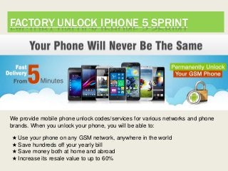 We can even unlock the devices sprint will not unlock for you! If it's a second hand iphone, you need to . Keep in mind, unlocking a sprint iphone is 100% legal. The unlocked device can be used on any network. More on that, you will also get the step by step .